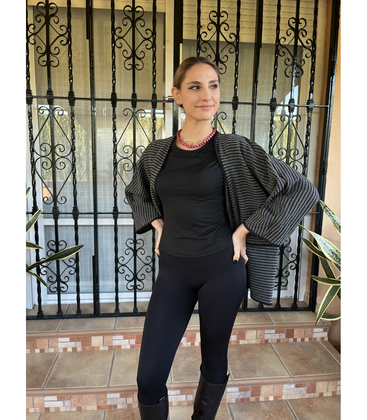 Color gris y negro.